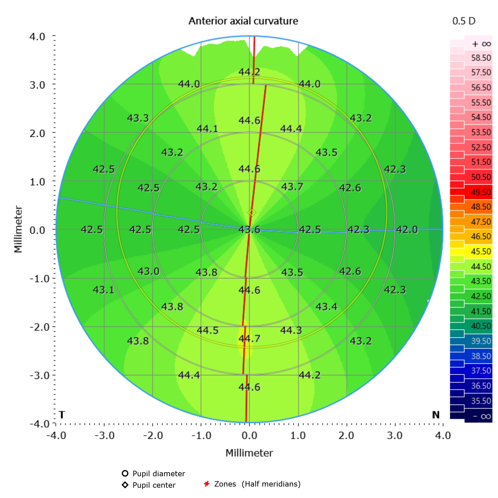 由於雙眼散光度數超過 200 度,散光軸度精準定位更為重要。遠見眼科手術醫師將散光軸度定位方式改良,不以粗粗的紫色手術記號筆塗抹,而是利用微能量的鉺雅鉻雷射在角膜外表面打上記號,增加精準度,降低記號筆摩擦的不適感,也避免了墨水暈染,讓接下來的 SMILE Pro 近視雷射手術定位過程更順利。