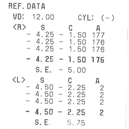 手術前主觀驗光為右眼近視 425 度,左眼近視度數 450 度且高度散光 225 度。